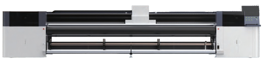 A 3.2-meter wide UV roll-to-roll printer with a printing speed of up to 165 m²/h. Equipped with ink stabilization technology, LED curing lamps, and an anti-collision feature for high-quality prints and device protection. Ideal for flexible media such as banners, fabrics, and films.